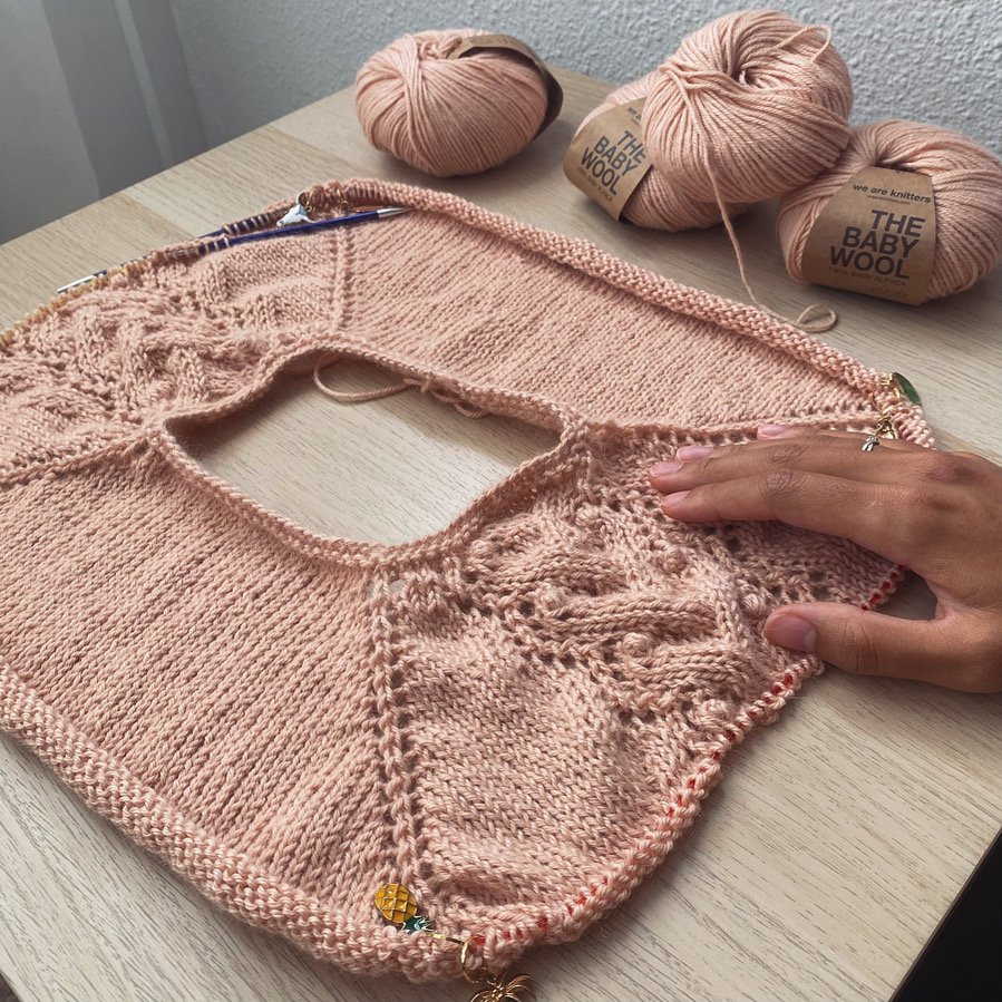 Fibra utilizada en el modelo de exposición : The Baby Wool de We Are Knitters, 100% baby Alpaca, Color Salmón